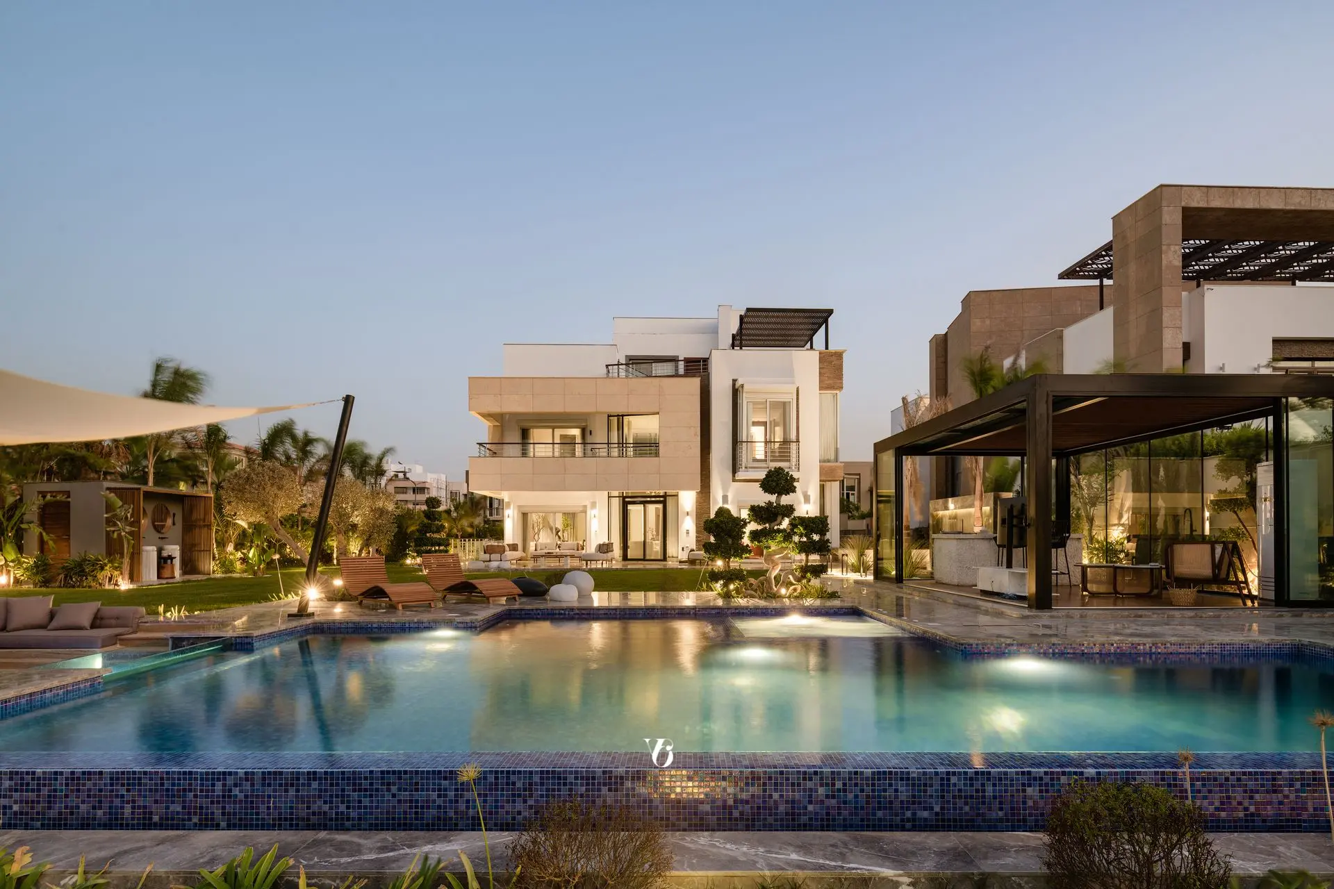 This landmark residential project was delivered as a full design and build package for client A.B., located in Oriana Villas within Cairo Festival City. The company managed all project phasesβfrom conceptual and architectural design through to full-scale construction and interior finishing.Spanning a total built-up area of 1,700 square meters, the villa was envisioned to embody contemporary elegance, luxurious living, and architectural refinement. Every design detail was meticulously tailored to meet the clientβs lifestyle, with a harmonious balance between form and function at every stage.